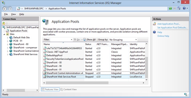 Y si se vuelve al IIS el pool se detiene nuevamente,