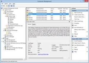The identity of application pool SharePoint Central Administration v4 is invalid. The user name or password that is specified for the identity may be incorrect, or the user may not have batch logon rights. If the identity is not corrected, the application pool will be disabled when the application pool receives its first request.  If batch logon rights are causing the problem, the identity in the IIS configuration store must be changed after rights have been granted before Windows Process Activation Service (WAS) can retry the logon. If the identity remains invalid after the first request for the application pool is processed, the application pool will be disabled. The data field contains the error number.