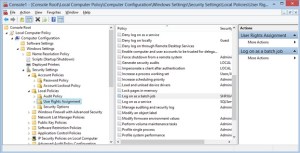 Para cambiar la política es necesario ingresar a la consolo mmc.exe y luego a local computer policy y agregar el usuario de servicio,