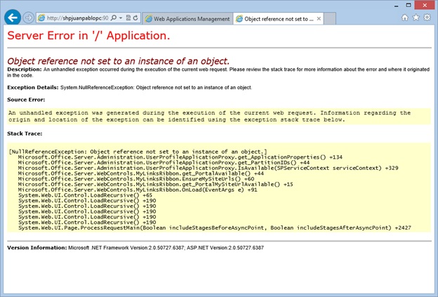 Y lo modificamos para que podamos ver los errores para nosotros los desarrolladores, con SharePoint he aprendido a querer las ventanas amarillas,